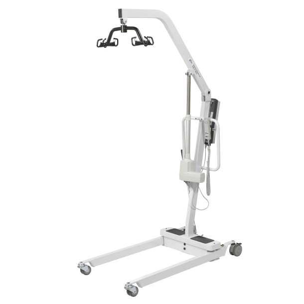 Portable battery-operated lift for safe patient handling. Provides controlled raising and lowering with minimal caregiver effort. Ideal for patients with limited mobility, ensuring secure and dignified transfers.